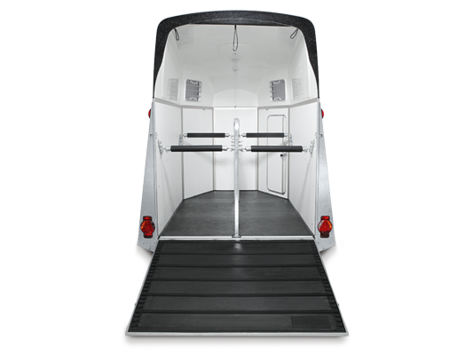 Die gasfederunterstützte Heckklappe ist mit einer Gummigranulatmatte belegt, was ihrem Pferd zu einem sicheren Einstieg in den Anhänger verhilft.